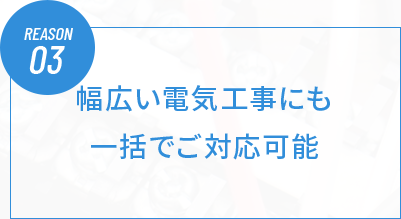 そのためLED照明工事や各種LAN配線工事、防犯カメラ工事など、電気設備に関する幅広い電気工事にもご対応が可能です。